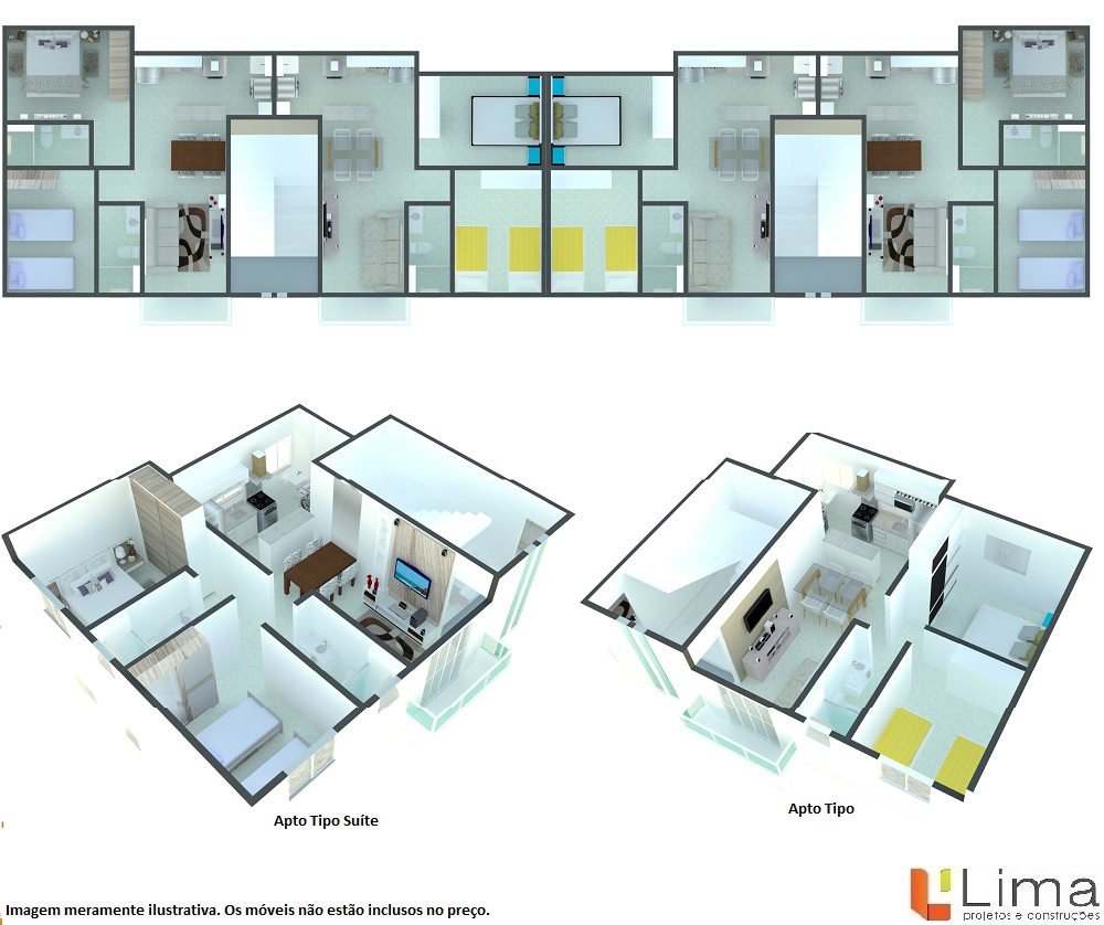 Apartamento com Suíte com área privativa de 58m², aproximadamente.